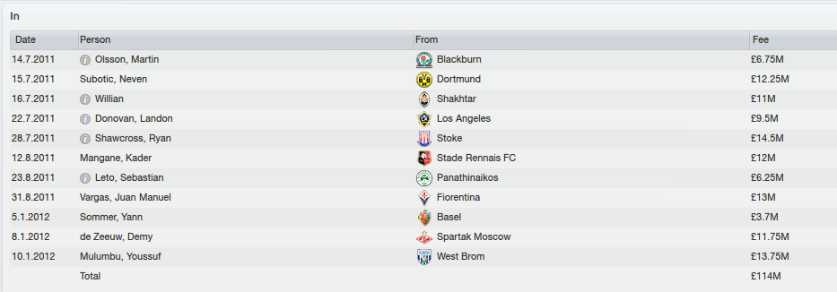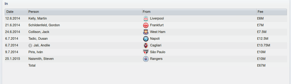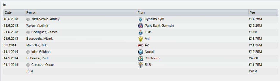 Despite investing nearly £100 million in the squad in 2013, Brucey’s net-spend would only be £20 million as the revolving door of talent exited St. James. Cabeye being the largest exit, for £20 million, closely followed by Subotic for £18 million. James Rodriguez could be a shrewd move though..