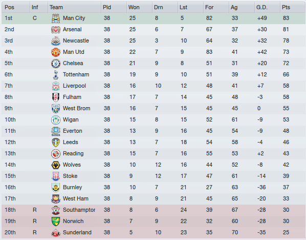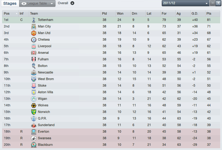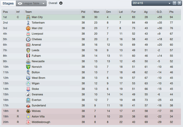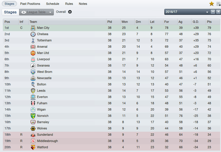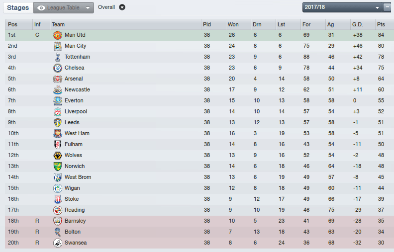 Man City win back-to-back titles, this time it’s not even close. Martin O’Neill gets Spurs back ahead of Man Utd and Ole qualifies for the Champions League knockouts a fourth season in a row.