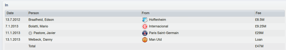After three years at the helm you might think Brucey has an idea about the direction of transfers – youth players for the future? Start of today? How about blowing another £67m on squad players like Steven Naismith and Jack Collison… Javier Pastore heads to join to Man City revolution for £25m, a nice £4m net- loss for Steve and his best player out the door.