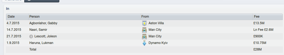 Bruce turns to Gabby Agbonlahor to turn his fortunes around after dispatching the services of James Rodriguez and Demba Ba. The experienced Lescott and Nasri could also bolster his squad. Bruce makes a net transfer profit of £20 million in the season. What happened to Sugar Daddy status and free-spending.