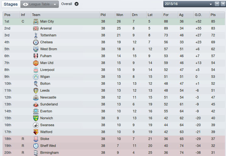 Jose and Cristiano bring home the league title for the third season running. West Brom and Fulham the over achievers both qualifying for Europe and edging out both Man Utd and Liverpool in the league.