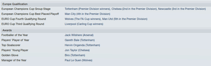 Unfortunately for Bruce and Newcastle, the domestic trophys were shared by Fulham and Norwich, so no European football.