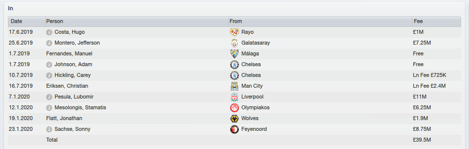 Bruce decides to spend some money in his sixth season. He also brings in World Cup winner Ashley Young on a free transfer as a shrewd piece of business. The other players are not regens, but I can’t say I know who they are!