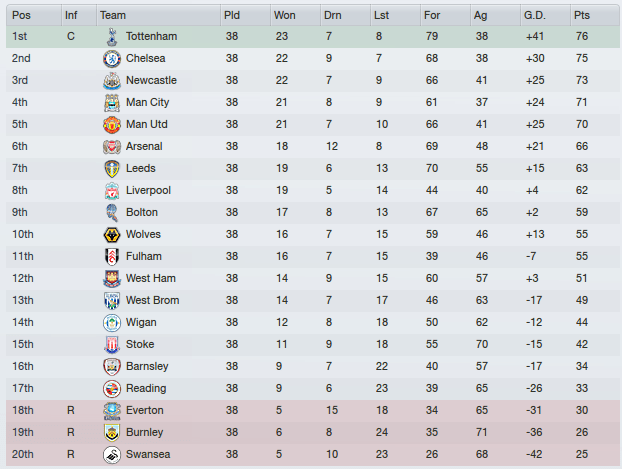 Serial winner Jose Mourinho wastes no time in repaying the faith from Daniel Levy, and returning the title with ten points to spare. Pep, Ole and Tuchel secure the Champions League places as Liverpool and Arsenal miss out. For Bruce and Newcastle, ninth and a near thirty point gap demonstrates how long the road ahead is likely to be.