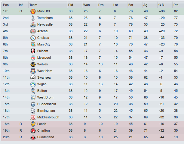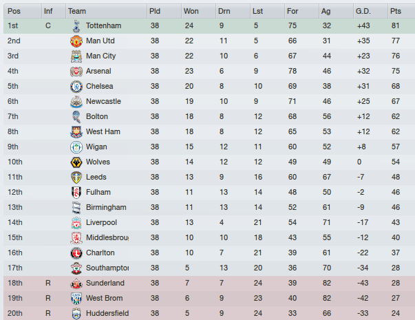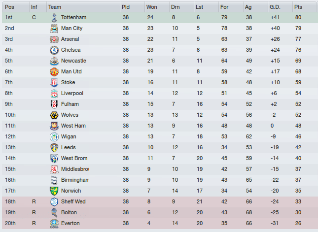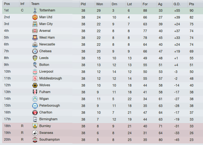 Babbel’s Spurs, with Coxon in tow, would break the Manchester stranglehold on the Premier League trophy. What is it with ex-Magpies managers and silverware?! For Shearer, its a disappointing sixth, though looks like Sunderland’s yo-yo relationship with the Premier League continues..