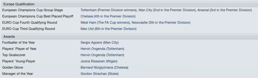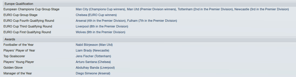 The Premier League would see silverware for Arsenal, by this time managed by Thomas Tuchel. Tuchel would do the dirty a few weeks after lifting the trophy and resigning for the Man City job. For Babbel, a ninth placed finish is would see him through to another season. Staveley is showing some resolve! Brady would score 28 goals in 55 games.