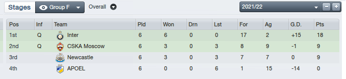 In Europe, Shearer’s men would qualify as winners of Champions League Group A, at the expense of Dortmund, and a good defensive showing.