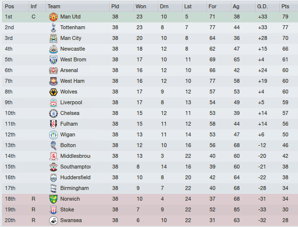 The reason for the sacking becomes clearer as Newcastle struggle to a fifth placed finish. Ex-boss Slaven Bilic wins the league as the first time of asking with Spurs. Ole falls from first to sixth, but still Ed Woodward is reluctant to make a change. Ole survives another season.