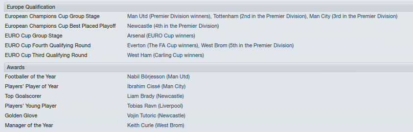 Man City would concentrate efforts on the Champions League and the gamble would pay off for Tuchel, as the trophy guaranteed him a place in the competition for the next campaign. New Toon hero, Liam Brady, would also win more individual accolades and an England senior call.