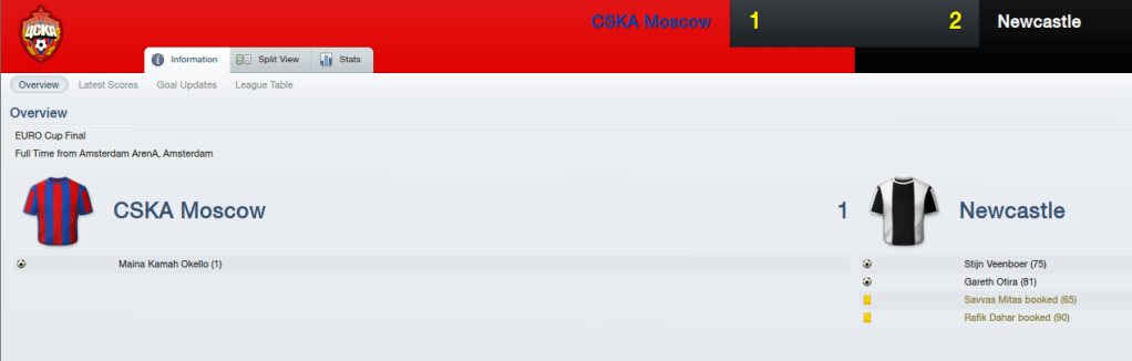 Dutch defensive midfield regen and former Ajax youth player Stijn Vennboer would help inspire the Magpies to a comeback at his ancestral home. Kiwi wingrer Gareth Otira would scorfe the winner to ensure Alan Shearer lifted a European Trophy for the first time! Captain Liam Brady would claim MoM for his part in the final.