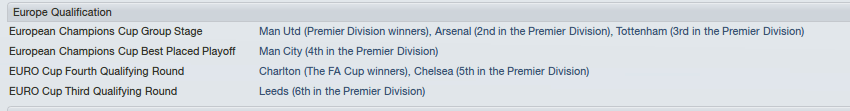 Arsenal – now managed by Diego Simeone – would defend their Premier League crown. For Babbel, a slow start meant the chopping block, to be replaced by a club legend Alan Shearer! |Big Al would bring success and Champions League qualification – even if on goal difference. For young Liam Brady, he would improve to 30 goals in 42 games.