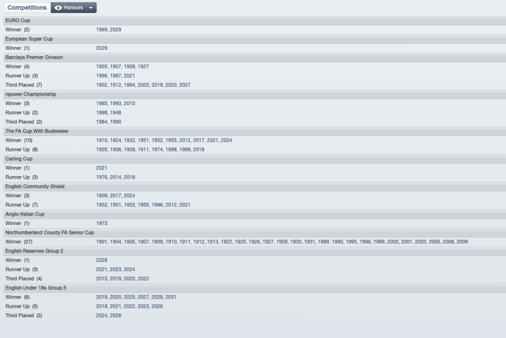 The board turn to Jim Bentley to lead the club after Shearer’s exit. Bentley started the game as player-manager of Morcambe. Looking through Bentley’s in-game record, it seems he won promotion to League One with Morcambe in 2014; won League One with Blackburn in 2022; won promotion to Premier League with Swansea in 2025; won the Championship with Leeds in 2028 and guided Leeds to 8th in the Premier League. It’s steady progress as a manager, but title-winning? Good luck Magpies fans!